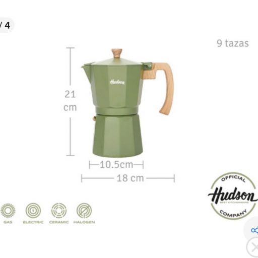 CAFETERA HUDSON ALUMINIO OLIVE 9 TAZAS *