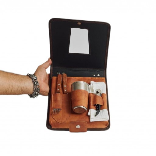 PORTA PLATO SIMIL CUERO CON CUBIERTOS 0